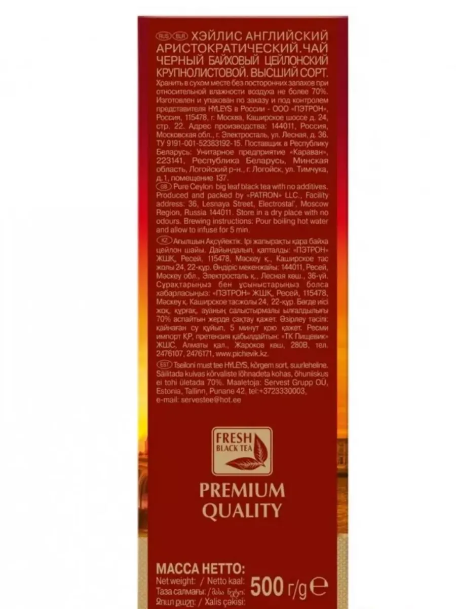 Чай HYLEYS "Английский Аристократический" - это изысканный купаж черных чаев, созданный для ценителей классического вкуса. Его насыщенный аромат и богатый вкус с легкими нотками пряностей перенесут вас в атмосферу настоящей английской чайной церемонии. Этот чай станет идеальным дополнением к завтраку, afternoon tea или уютному вечеру в кругу семьи. Упакованный в элегантную банку весом 500 грамм, он станет прекрасным подарком для истинных гурманов. Подарите себе и своим близким кусочек настоящей английской традиции.