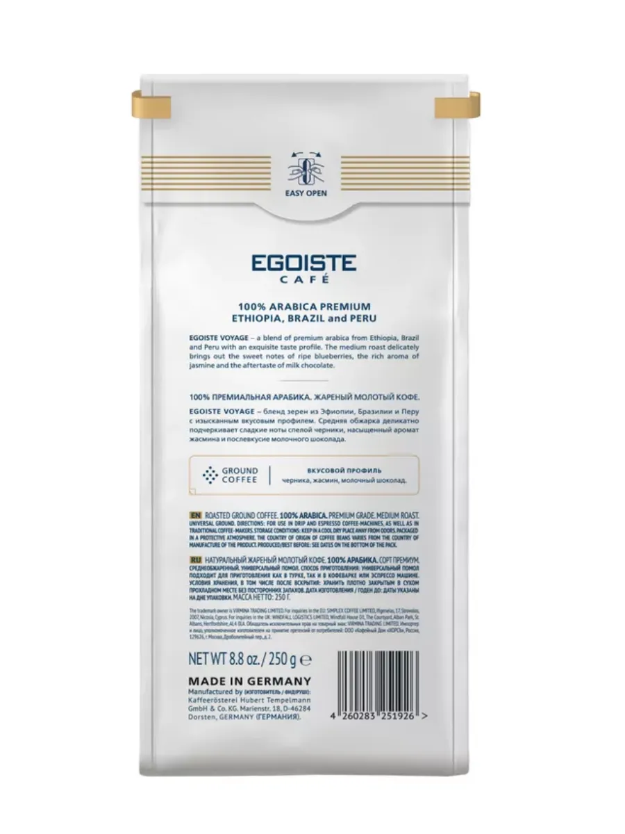 Насладитесь насыщенным ароматом и неповторимым вкусом кофе EGOISTE VOYAGE. Этот молотый кофе, упакованный в удобные пакеты по 250 грамм, станет идеальным выбором для любителей крепкого и бодрящего напитка. 100% арабика, выращенная в лучших кофейных регионах мира, подарит вам заряд энергии на весь день.