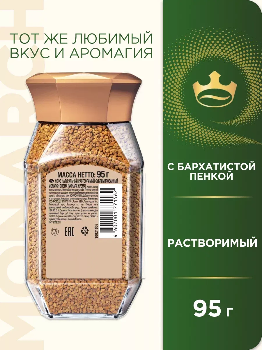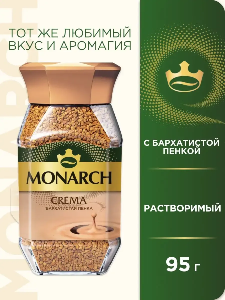 Растворимый кофе "Монарх Крема" - это идеальный выбор для тех, кто ценит насыщенный вкус и нежный аромат. Этот кофе изысканного вкуса с кремовой ноткой подарит вам бодрость и заряд энергии на весь день. Удобная упаковка 95 грамм позволит насладиться любимым напитком в любой ситуации. "Монарх Крема" - это гарантия качества и неповторимого вкуса, который оценит каждый ценитель настоящего кофе.