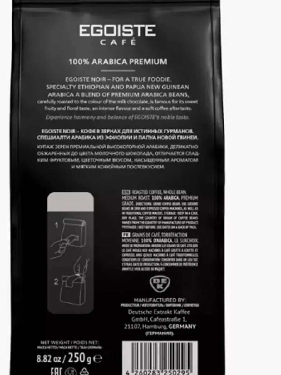 Кофе в зернах Egoiste Noir, 250 гр, представляет собой идеальный выбор для любителей настоящего ароматного кофе. Этот зерновой кофе выращен в условиях идеального климата, что обеспечивает его неповторимый вкус и аромат. Зерна Egoiste Noir отличаются насыщенным, но при этом мягким вкусом с нотками шоколада и ореха, что делает его идеальным для приготовления как эспрессо, так и других видов кофе. Каждый пакет весом 250 грамм содержит только самые высококачественные зерна, тщательно отсортированные и упакованные для сохранения свежести и аромата. Egoiste Noir – это не просто кофе, это настоящее удовольствие для кофейных гурманов, которые ценят качество и уникальность вкуса.