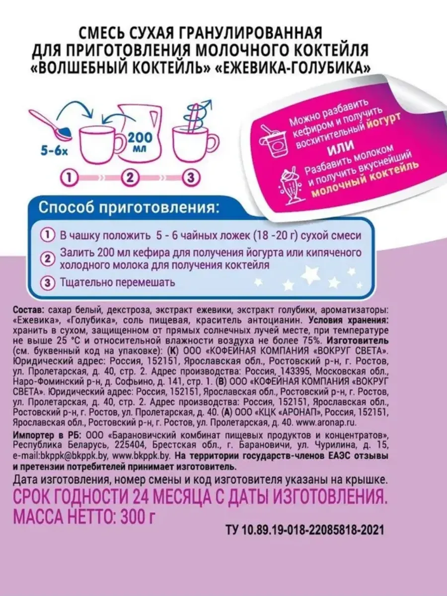Насыщенный вкус ежевики и голубики в каждом глотке! Волшебный коктейль "Белый Мишка" порадует вашего ребенка своим нежным ароматом и приятной сладостью. Этот напиток станет отличным дополнением к завтраку, перекусу или послеобеденному десерту. Удобная упаковка объемом 300 г позволит насладиться любимым вкусом в любое время. Побалуйте своего малыша полезным и вкусным лакомством от "Белый Мишка"!