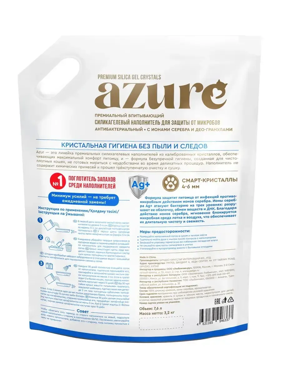 Силикагелевый наполнитель Azure для защиты от микробов объемом 7.6 литров — это идеальное решение для поддержания чистоты и гигиены в доме, где живут ваши любимые питомцы. Этот инновационный наполнитель эффективно поглощает влагу и неприятные запахи, создавая комфортную и свежую среду для вашего кота или грызуна. Благодаря своей уникальной структуре, силикагель не прилипает к лапам питомца, предотвращая разбрасывание гранул по дому. Azure — это безопасный и гипоаллергенный наполнитель, который не раздражает кожу и дыхательные пути животных.