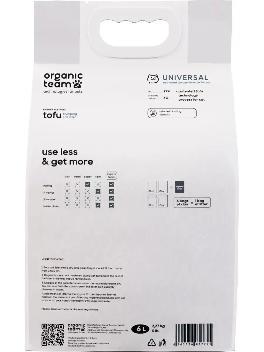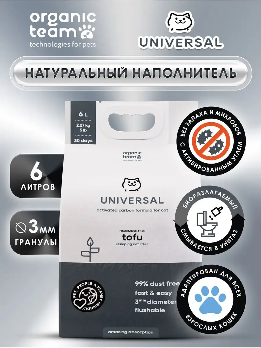 Наполнитель 6 л (2.27 кг) - 1 шт, угольный наполнитель тофу для кошачьего туалета