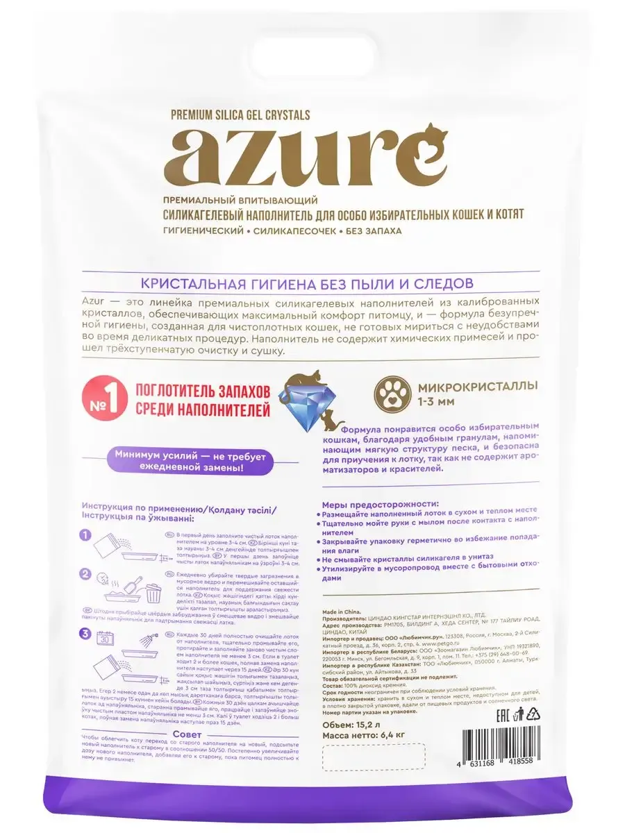 Силикагелевый наполнитель Azure гигиенический с ДЕО гранулами, объемом 15,2 литра – идеальное решение для владельцев привередливых кошек. Этот наполнитель эффективно поглощает влагу и неприятные запахи, обеспечивая чистоту и свежесть в доме. Благодаря своей уникальной структуре, он не прилипает к лапам питомца, предотвращая разбрасывание гранул. Силикагель Azure безопасен для кошек, не пылит и не вызывает аллергических реакций. Он экономичен в использовании, так как один пакет хватает надолго. Сделайте выбор в пользу комфорта и гигиены для вашего любимца с наполнителем Azure.