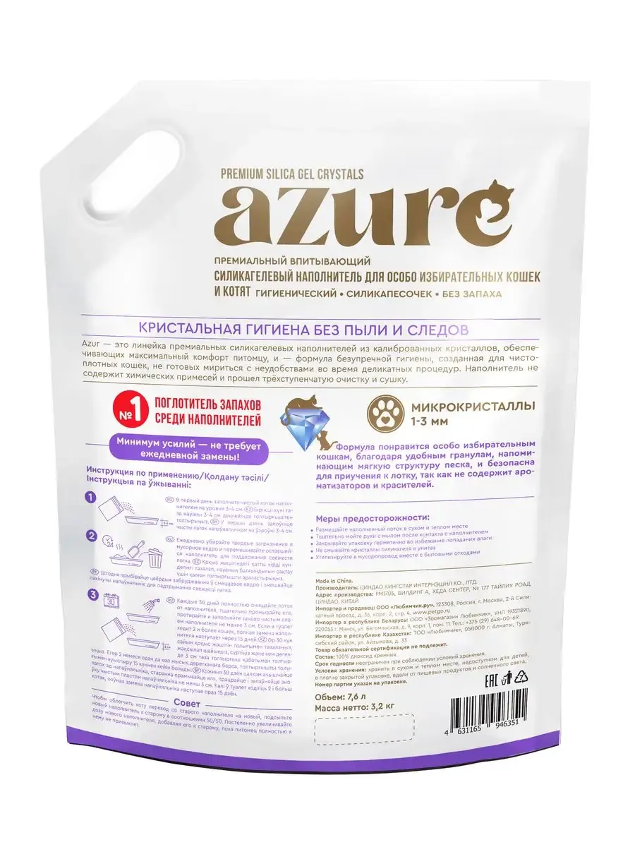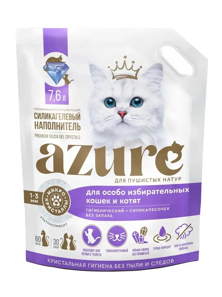 Силикагелевый наполнитель Azure для особо избирательных кошек и котят объёмом 7.6 литра — идеальное решение для поддержания чистоты и свежести в доме. Этот высокоэффективный наполнитель быстро впитывает влагу и неприятные запахи, обеспечивая гигиену и комфорт для вашего питомца. Благодаря своей уникальной структуре, он не прилипает к лапам кошки, предотвращая разбрасывание гранул по дому. Силикагель Azure — это экономичный выбор, так как его расход значительно меньше, чем у традиционных наполнителей. Он также безопасен для здоровья кошки и окружающей среды.